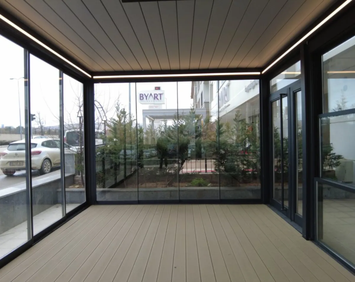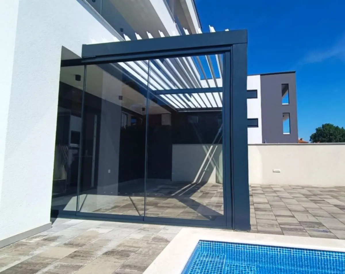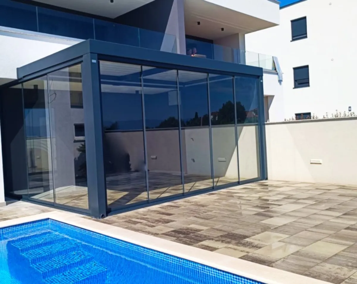 Sklopivi i zaštitni sistem pergola je specijalno dizajniran da pruži estetski izgled spoljašnjim fasadama. Njegov izvanredan dizajn i jedinstvena tehnologija donose moderan izgled svakom prostoru. Može automatski otvarati i zatvarati u skladu sa sezonskim vremenskim uslovima.